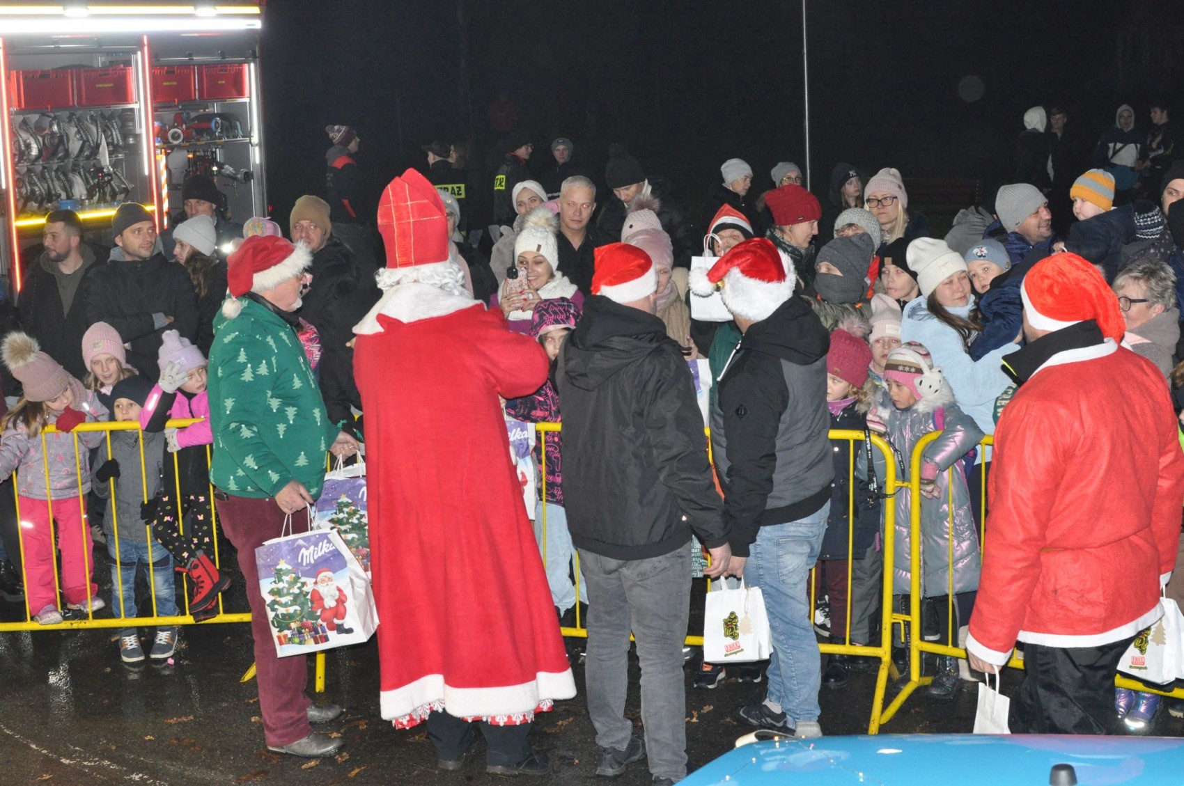 Podczas gdy Święty Mikołaj z pomocą elfów, renifera i innych dzielnych pomocników rozdawał paczki, starsi i młodsi mogli podziwiać wozy bojowe Ochotniczej Straży Pożarnej bądź przybić „piątkę” z maskotkami. Otrzymane prezenty posiadały numery biorące udział w losowaniu nagród specjalnych, szczęśliwcy mogli liczyć na naprawdę okazały bonus!