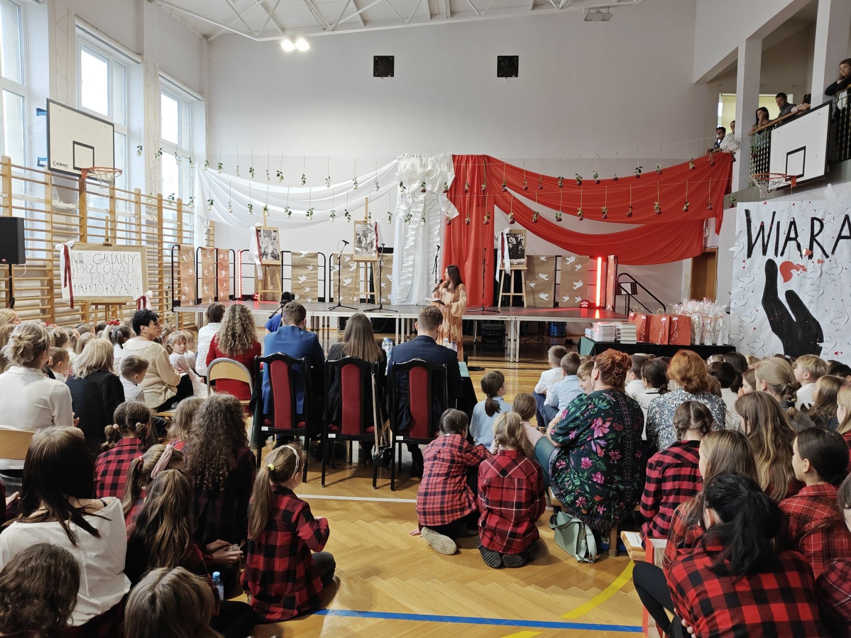 Wójt Grzegorz Boboń obecny wśród gości Przeglądu pogratulował bardzo wysokiego poziomu artystycznego wykonawców – od przedszkolaków po młodzież. Stwierdził, że sam udział jest dowodem żywego patriotyzmu i troski o zachowanie narodowej tradycji oraz pamięci historycznej, ponieważ patriotyzm to nie ślepe uwielbienie wszystkiego, co narodowe, ale umiłowanie tego, co w narodzie najlepsze i dążenie do ulepszenia tego, co złe.