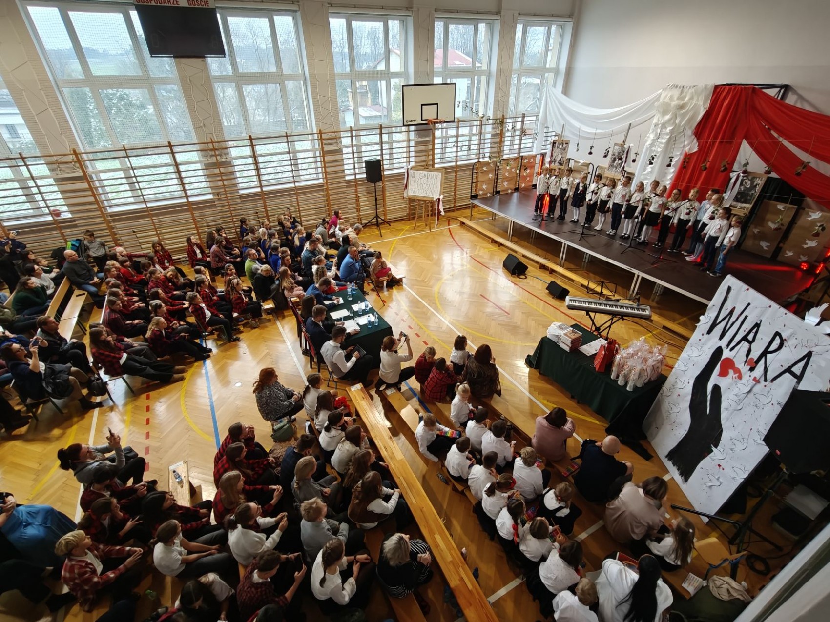 Ocenie podlegało wykonanie (intonacja, dykcja, wielogłosowość, interpretacja), ale także dobór repertuaru i takie kryteria jak zachowanie sceniczne, wizerunek i strój. Nie wszystko wszakże da się opisać cyframi – miłość Ojczyzny, zapał i serce do śpiewu zasłużyły na najwyższą notę u każdego, kto zaprezentował się przed publicznością w szkolnej sali gimnastycznej. Sali wypełnionej jak zwykle przy tej okazji do ostatniego miejsca i przepięknie udekorowanej. Dodatkowo w holu można było obejrzeć wystawę historyczną pt.: „Niepodległa w dokumentach naszego regionu. Pamięć wyzwala wdzięczność i łączy pokolenia”. Ekspozycja zawierająca cenne zdjęcia i dokumenty pozyskane od mieszkańców czy też z archiwów została przygotowana przez stowarzyszenie zwykłe „Lachy wczoraj i na wieki” z Bestwiny, we współpracy ze Szkołą Podstawową im. św. Jana Kantego w Bestwinie.
