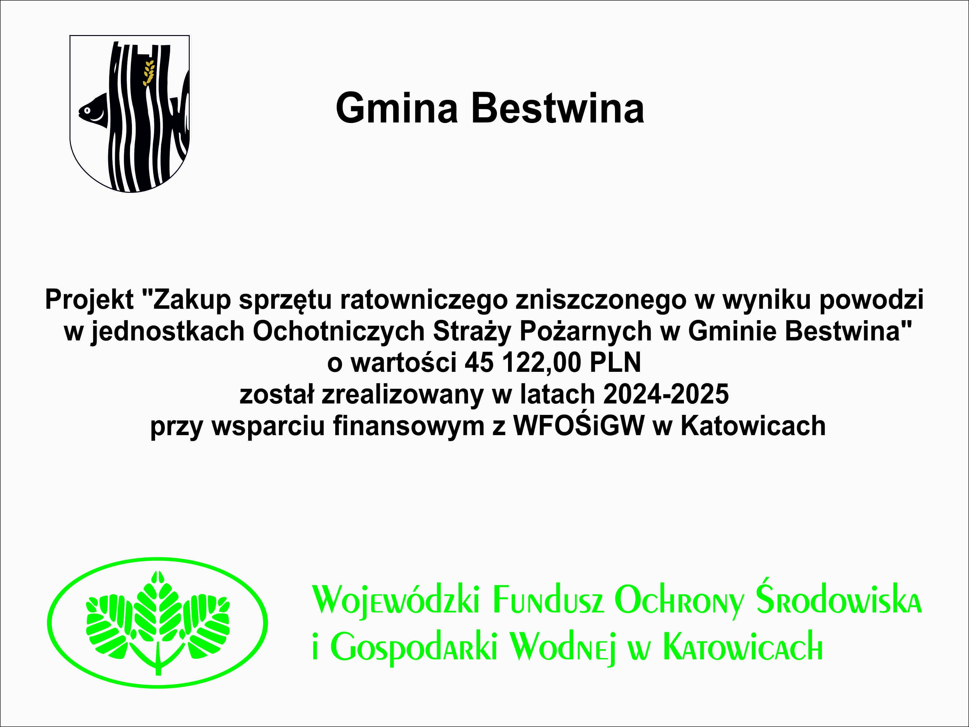Zakup sprzętu ratowniczego zniszczonego w wyniku powodzi w jednostkach Ochotniczych Straży Pożarnych w Gminie Bestwina